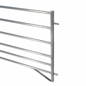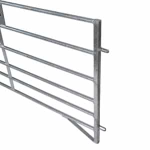 These open bar panels are available in 4, 5, 6, and 8 feet long. These panels are ideal for goats or jumping breeds. Panels can be connected, making holding pens of different sizes in your barn or for holding areas in your handling system.